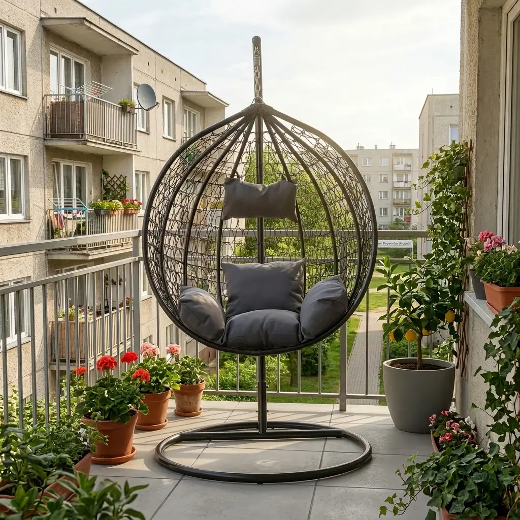 Kokon wiszący to doskonały wybór dla osób poszukujących komfortowego miejsca do relaksu w ogrodzie, na tarasie lub balkonie. Stabilny stalowy stelaż malowany metodą proszkową skutecznie chroni konstrukcję przed korozją i zapewnia trwałość na długi czas. Kosz fotela wiszącego wykonany jest z wytrzymałego technorattanu łączy estetyczny wygląd z odpornością na codzienne użytkowanie. Miękkie poduchy z tkaniny poliester zwiększają komfort siedzenia, dzięki czemu fotel idealnie sprawdzi się podczas wypoczynku na świeżym powietrzu.