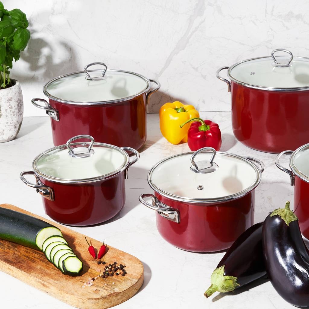 Wykonany ze stali pokrytej emalią, garnek łączy trwałość z bezpieczeństwem w kontakcie z żywnością. Powierzchnia nie wchłania zapachów ani barwników, co ułatwia utrzymanie czystości i zachowanie świeżości potraw. Konstrukcja wspiera równomierne nagrzewanie, a dopasowana pokrywka pomaga utrzymać odpowiednie warunki gotowania. Wzmocniony brzeg zwiększa odporność na uszkodzenia, co przekłada się na dłuższą żywotność naczynia.