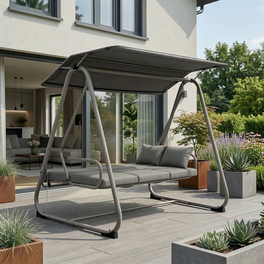 Nowoczesna huśtawka ogrodowa z funkcją spania