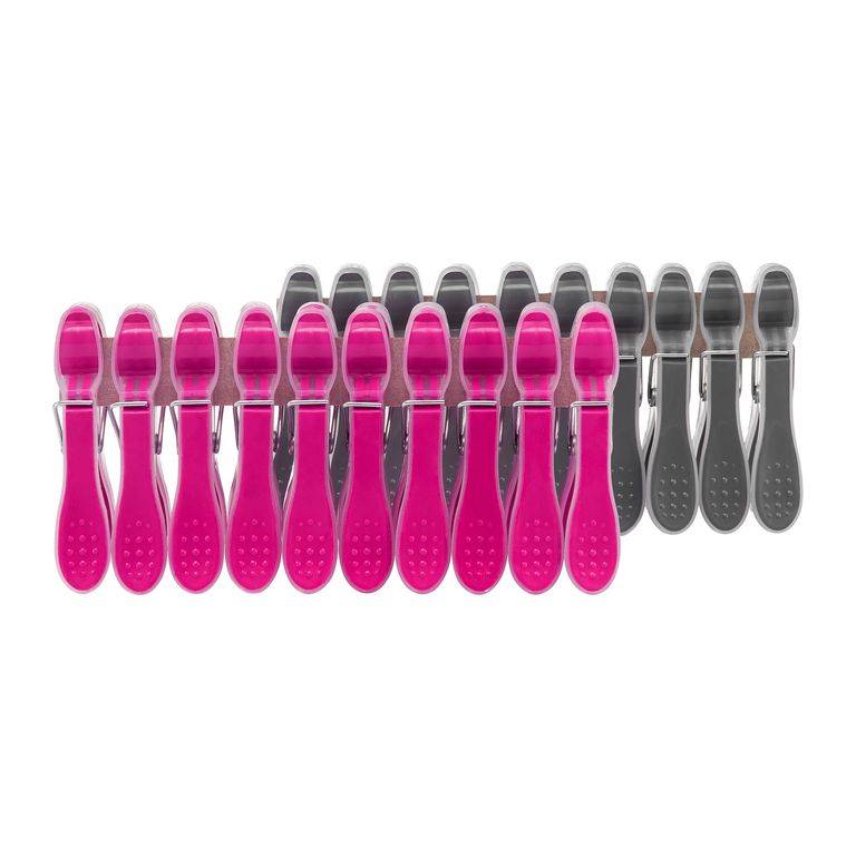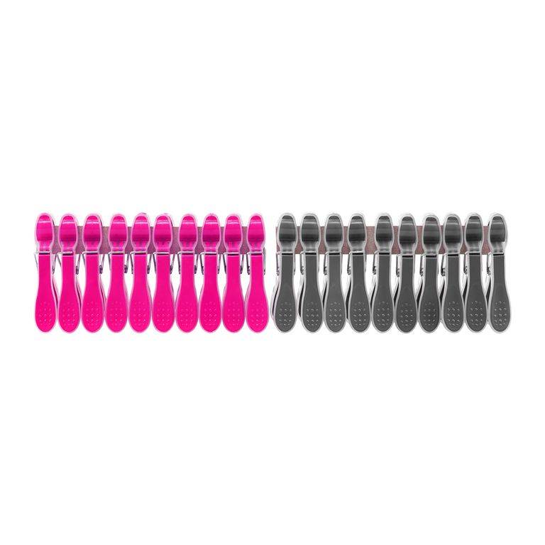 W komplecie 10 klamerek szarych oraz 10 różowych.