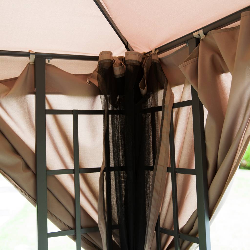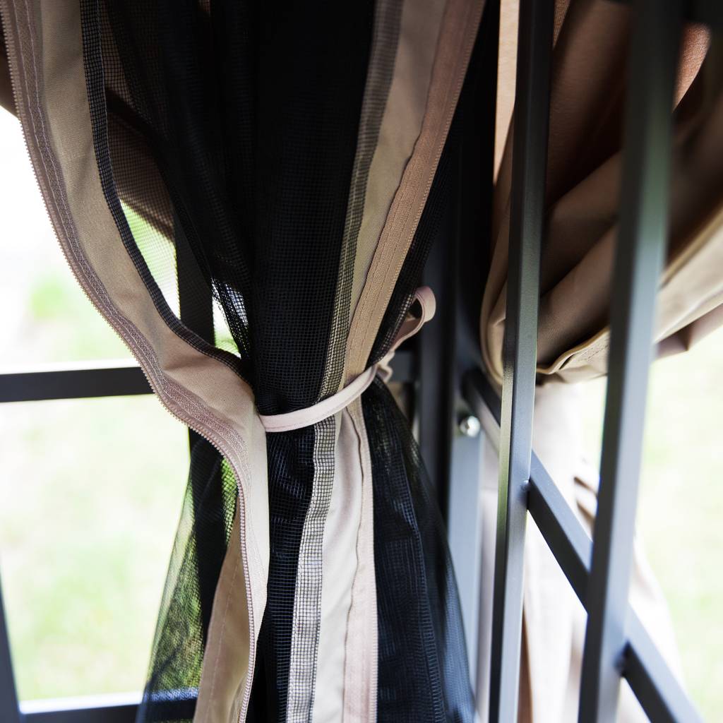 Poliester o gramaturze 160 g/m² skutecznie ogranicza nasłonecznienie oraz podmuchy wiatru, poprawiając komfort użytkowania przestrzeni pod pawilonem.