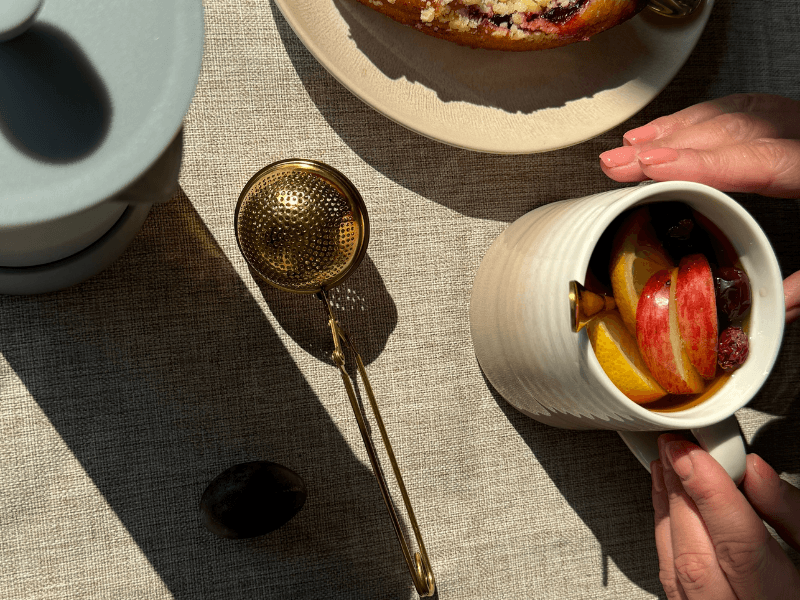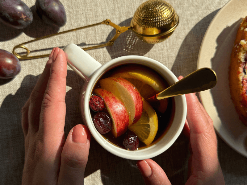Jesień to czas, gdy chętnie sięgamy po naturalne dodatki, które nie tylko wzbogacają smak, ale też wspierają zdrowie. Miód to klasyk, bo dodaje słodyczy, działa przeciwbakteryjnie i łagodzi podrażnienia gardła. Żurawina wprowadza lekko kwaskowy akcent i jest źródłem witaminy C. Cytryna to kolejny składnik, który odświeża smak i wzmacnia odporność. Plasterki jabłka nadają napojowi delikatnej słodyczy i jesiennego charakteru. Tak skomponowana herbata staje się nie tylko napojem, ale prawdziwym rytuałem, który rozgrzewa, relaksuje i poprawia nastrój w chłodne dni!